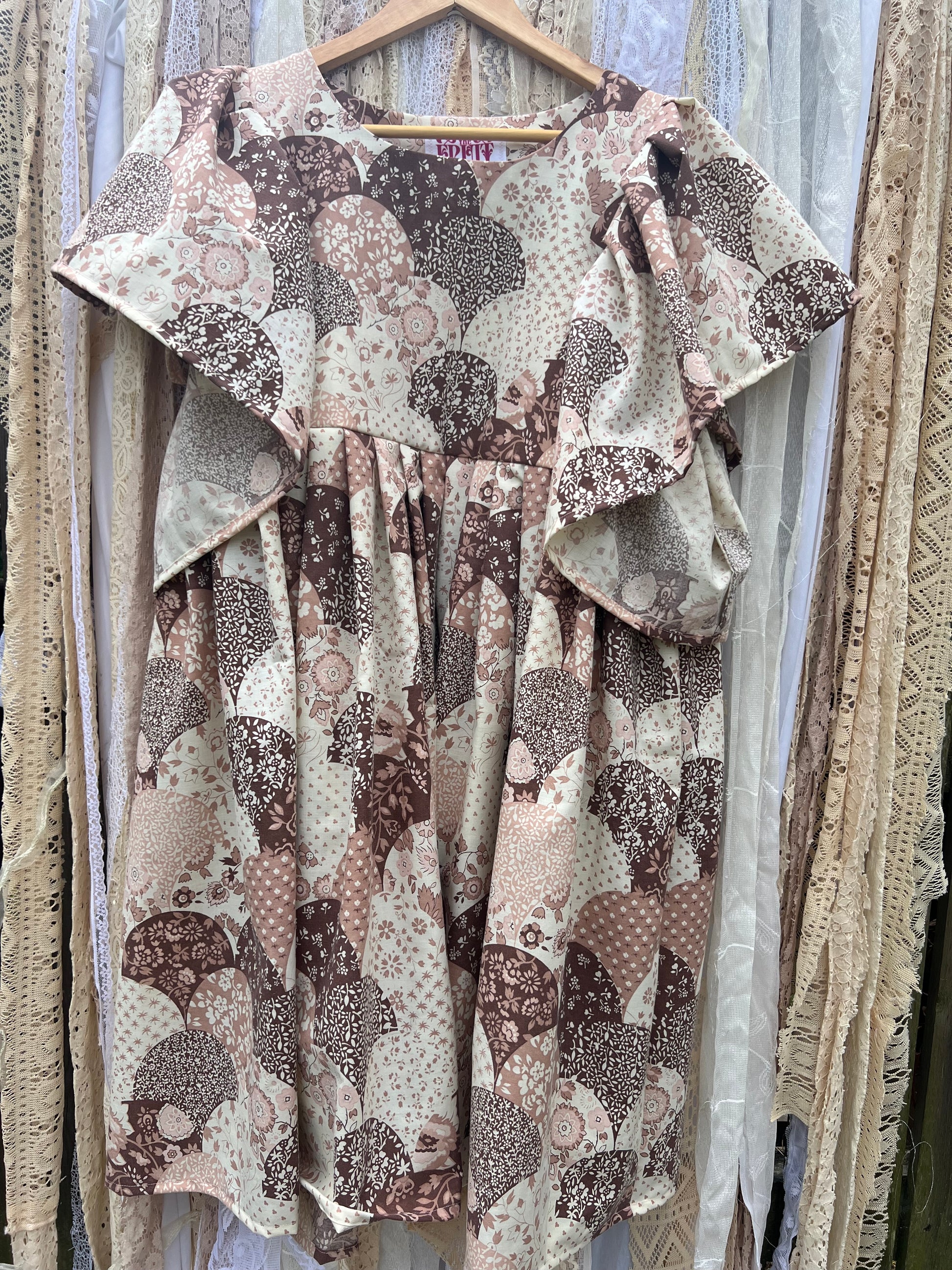 'Elma' Patchwork 70s Angel Sleeve Smock dress